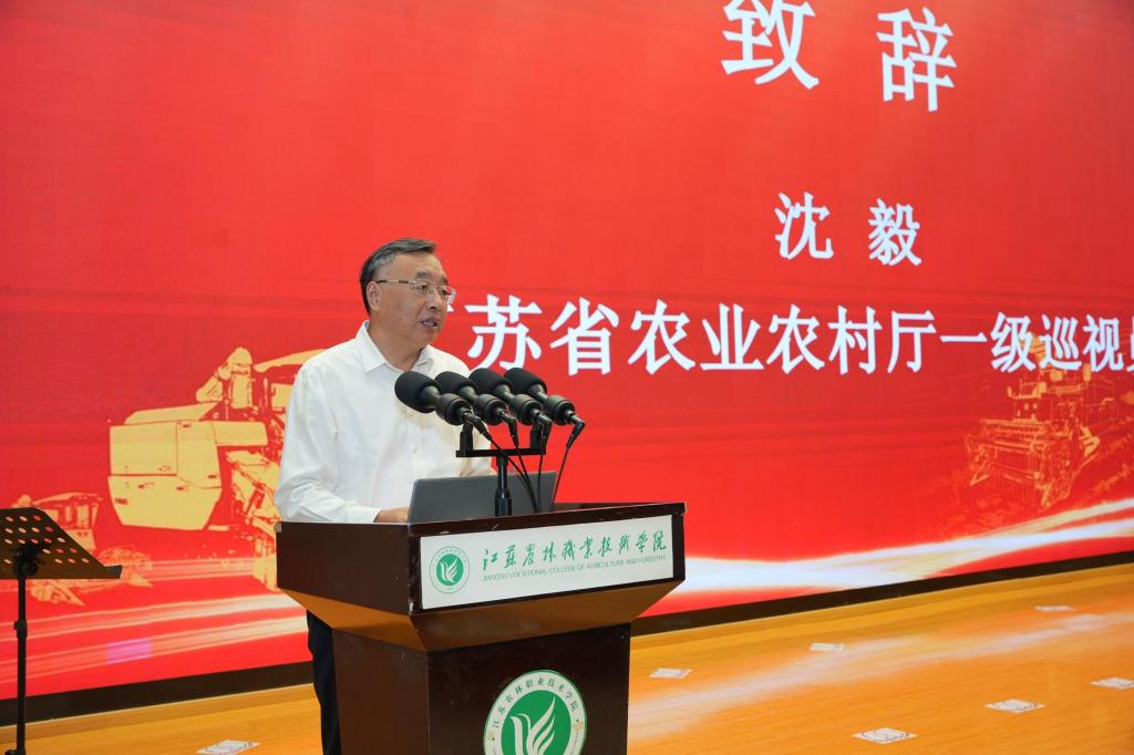 江苏省农业农村厅一级巡视员沈毅代表江苏省农业农村厅对共同体的成立表示热烈的祝贺!对共同体今后能够在农机装备产业科技创新上做引领、在现代化农机人才培养上走在前、在智慧农业发展和智能农机推广上当标杆等方面提出指导性意见和建议,为农机化转型升级高质量发展、新时代农机人才培养作出应有的贡献。