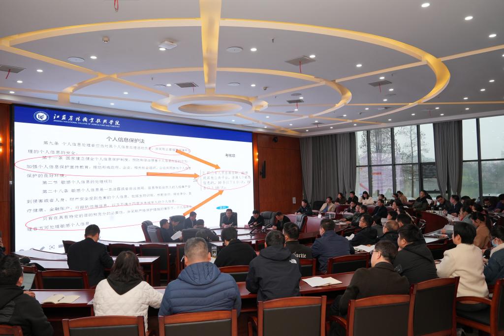 党委书记简祖平在讲话中强调,网络安全是国家战略,是学院发展的重要保障,必须高度重视网络安全工作,落实网络安全责任制,确保学院网络空间的安全和稳定。他对落实网络安全责任制提出四点要求:一是提高意识,落实责任。各部门、二级学院要高度重视网络安全,切实增强网络安全意识,做好各项制度和措施的落实;二是健全机制、完善制度。坚持学院网络安全和信息化领导小组的领导,加强规划统筹,完善信息化、网络安全制度建设;三是加强网络宣传平台建设,传播正能量。要善于利用网络进行正面宣传,传播国家方针政策、传播中华传统文化、传播学院办学亮点、特色;四是进一步完善网络安全应急方案。加强网络安全突发事件应急处置能力,面对突发事件,要快速响应,有效解决问题,提高网络应急处置能力。