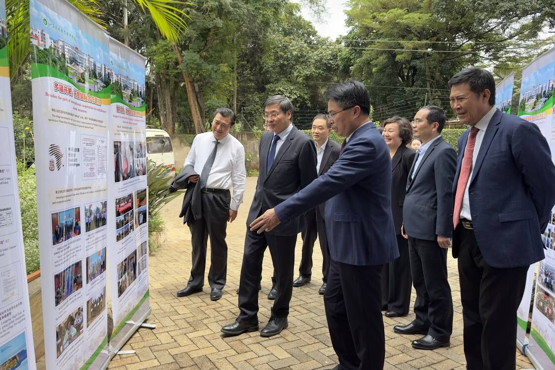 2024年4月19日,江苏省委常委、常务副省长马欣一行来到江苏华越集团驻肯尼亚办事处,实地调研了威尼斯官网与江苏华越集团共建的肯尼亚神农学院,参观了神农学院建设成果展并合影。