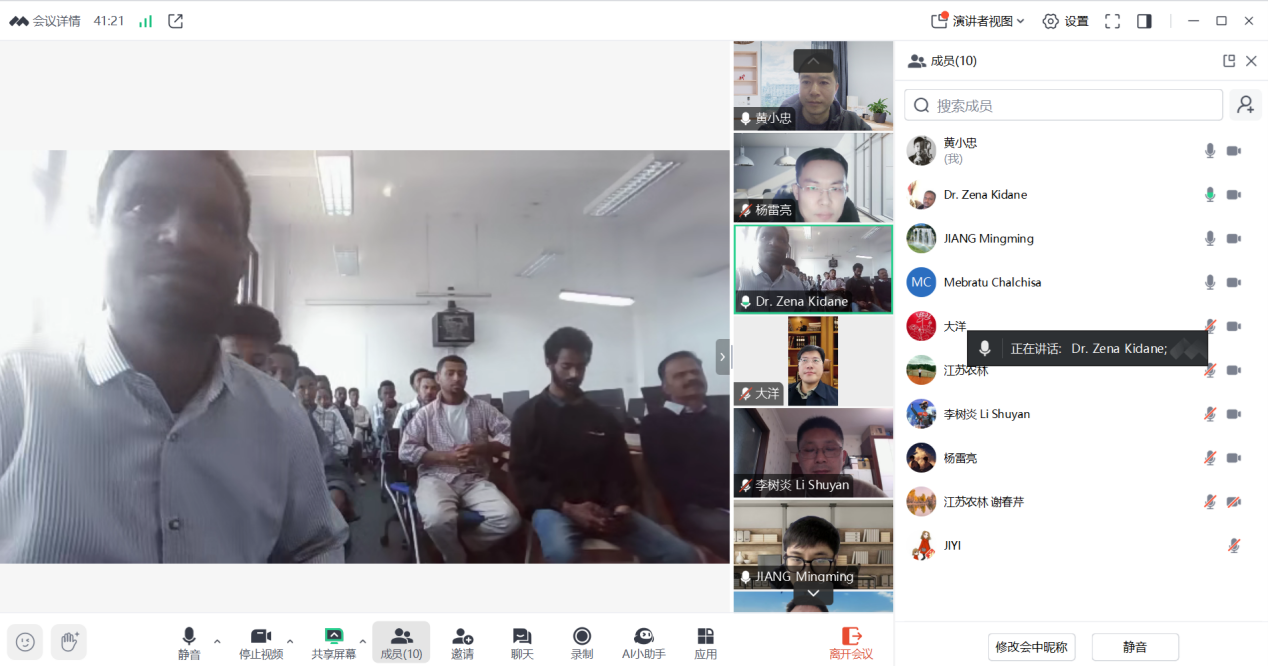 1月24日,茶与食品科技学院召开农产品加工与质量检测专业埃塞俄比亚联合培养项目新生线上会议。国际教育学院院长杨广荣、茶与食品科技学院院长谢春芹、埃塞俄比亚联邦技术职业培训学院联邦TVT研究所学术事务主任Genene Abebe Tadesse博士、公共关系总监Mebratu Chalchisa博士、农产品加工技术学院院长Samrawit Mulugeta博士、乳制品加工技术部主任Zena Kidane博士以及茶与食品科技学院相关专业老师、17名埃塞俄比亚留学生参加了会议,会议由茶与食品科技学院副院长黄小忠主持。