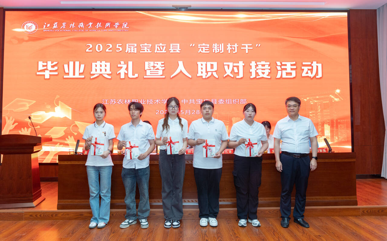 为进一步深化落实江苏省“定制村干”培育工程,加强校地双方沟通合作,完善“定制村干”全链条培养体系,5月28日,学院举办2025届宝应县“定制村干”毕业典礼暨入职对接活动。学院党委委员、副院长颜志明,宝应县委常委、组织部部长陈五湖,县农业农村局党委书记、局长梅高亮,宝应县委组织部副部长章婷,农学园艺学院相关负责人等,以及2025届、2023-2024级宝应县“定制村干”参加活动。活动由章婷主持。