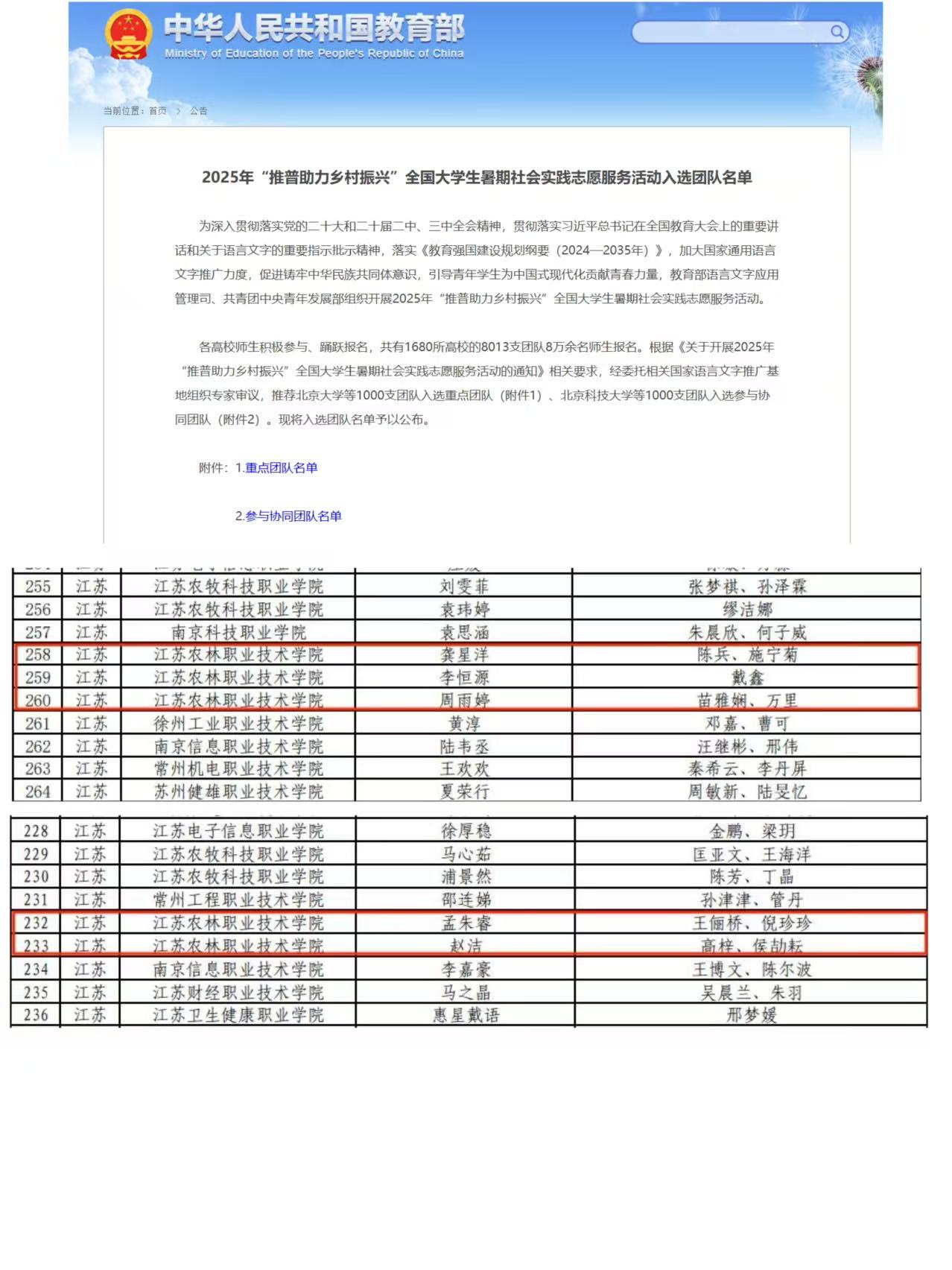 近日,教育部语言文字应用管理司、共青团中央青年发展部组织开展2025年“推普助力乡村振兴”全国大学生暑期社会实践志愿服务活动选拔,1680所高校的8013支团队报名参选。经审议,1000支团队入选重点团队,1000支团队入选参与协同团队。