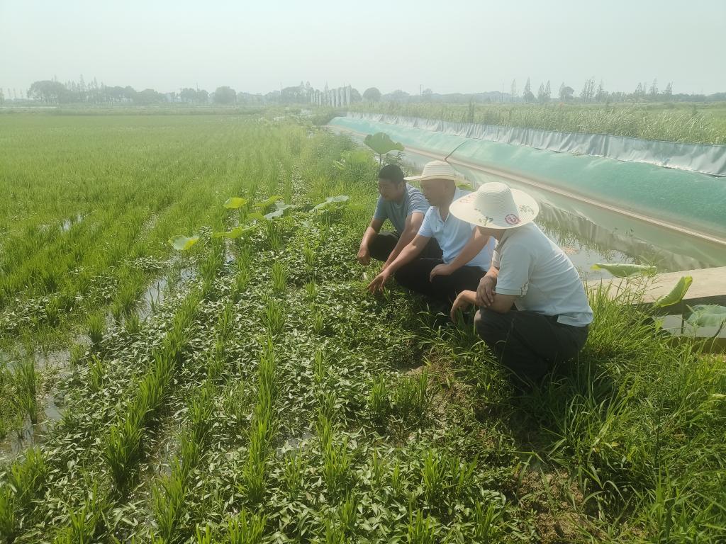 7月4日,农学园艺学院“新禾”粮食单产提升科技服务团骨干教师蔡善亚、张建祥奔赴常州杏塘村生产一线,为江苏杏花春雨农业科技公司提供面对面农业技术指导。公司董事长张志岳、水稻生产负责人葛天晴热情接待,并现场提出了困扰有机水稻种植的两大难题:移栽前杂草预防与移栽后杂草管理。