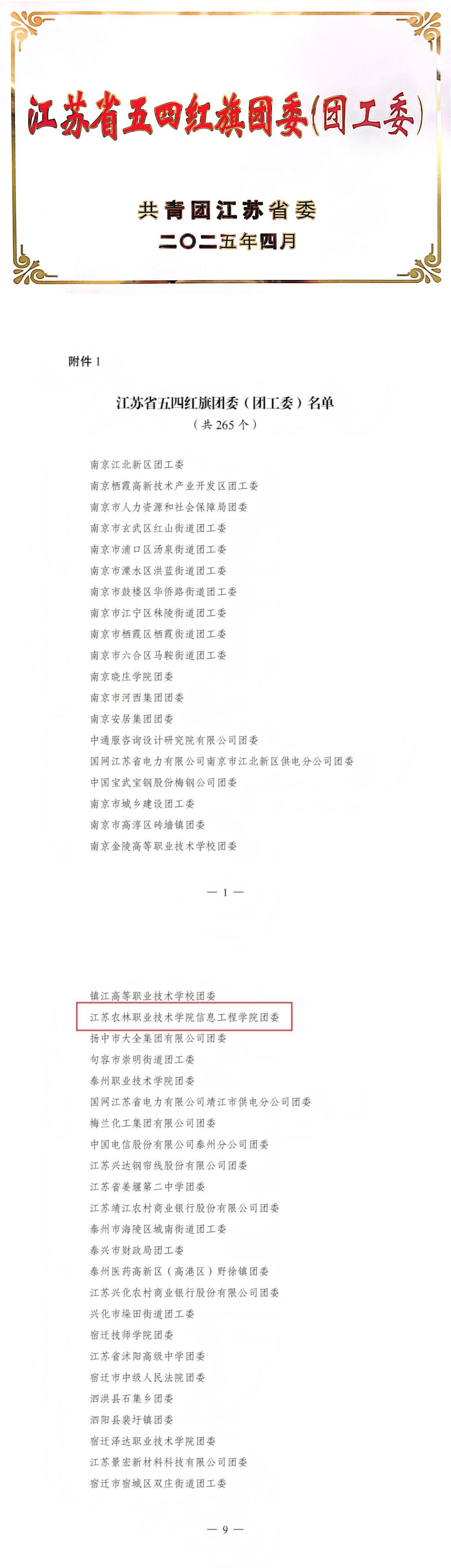 近日,江苏省“两红两优”评选结果揭晓,我校信息工程学院团委荣获“江苏省五四红旗团委(团工委)”荣誉称号。