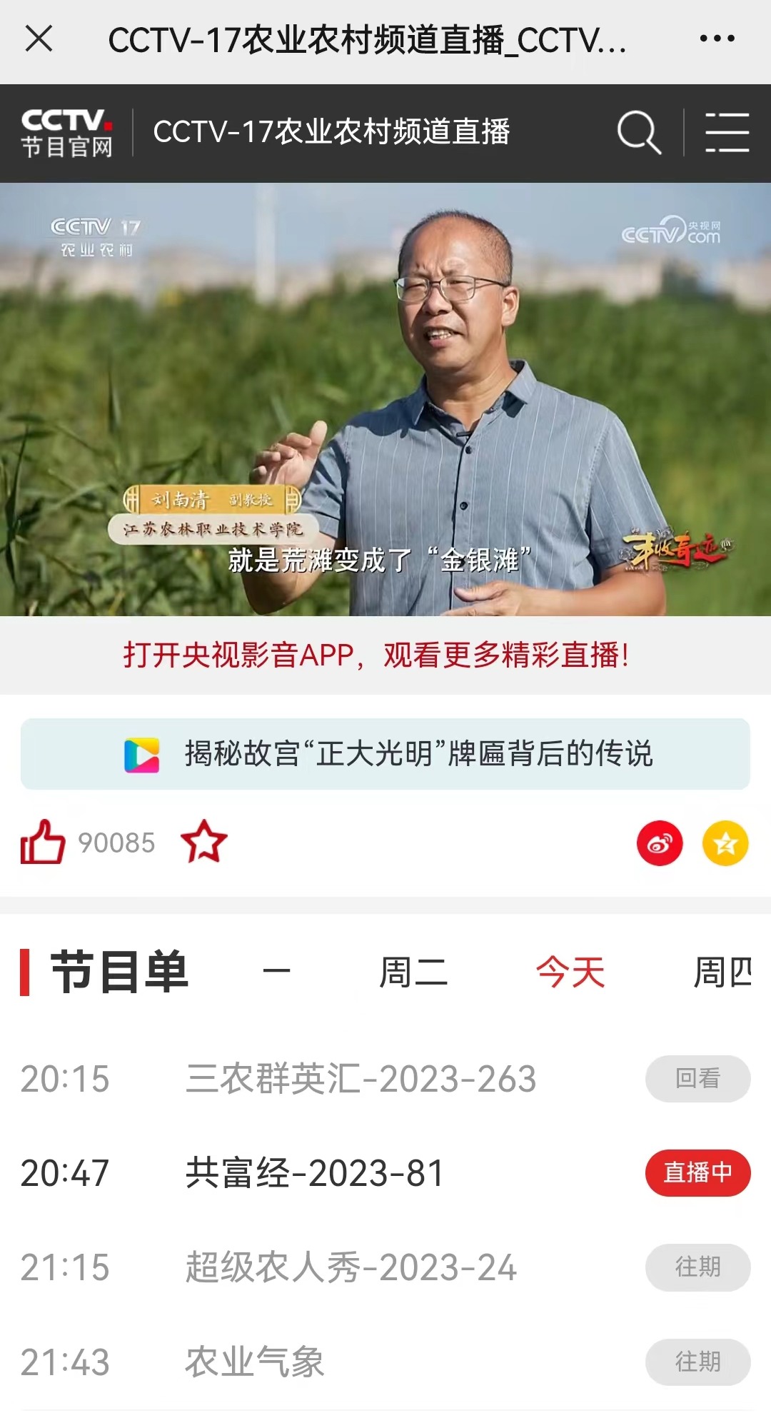 风景园林学院草坪科技创新团队与企业合作纪录片《丰收奇迹 荒滩变成“金银滩”》,登CCTV-17农业农村频道《共富经》栏目直播。