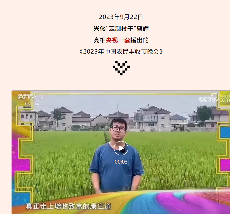威尼斯官网优秀毕业生——兴化“定制村干”曹辉亮相央视一套。