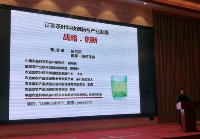 报告会上,中国农科院茶叶研究所鲁成银研究员、韩文炎研究员、南京农机化研究所肖宏儒研究员、省茶叶学会张定研究员分别作了茶叶品牌建设、茶园生态调控、茶园机械现状及发展趋势以及江苏茶产业发展对策的专题报告。鲁成银研究员在报告中提出茶叶品牌建设的重要性,指出江苏茶产业差异化发展具备的六大优势,更用“形秀、色翠、味鲜”六字形容江苏绿茶独一无二的品质特征。同时,为江苏茶产业发展提供战略和战术建议。