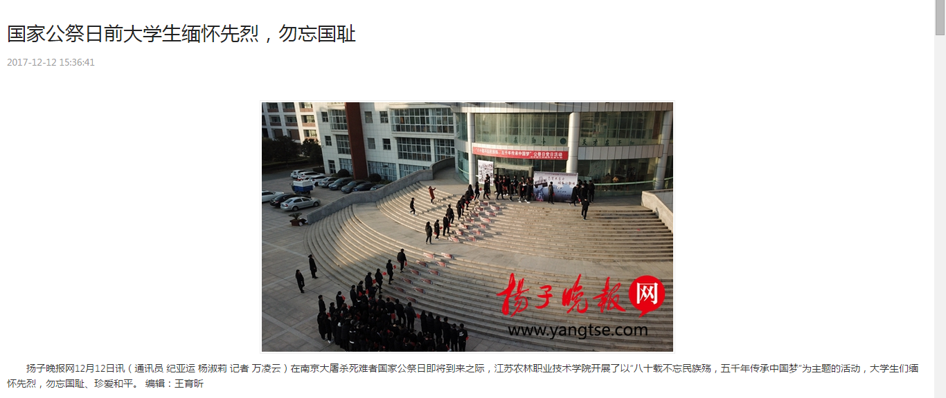 下一条:【扬子晚报、荔枝新闻】报道茅山校区“一二九”运动82周年纪念活动